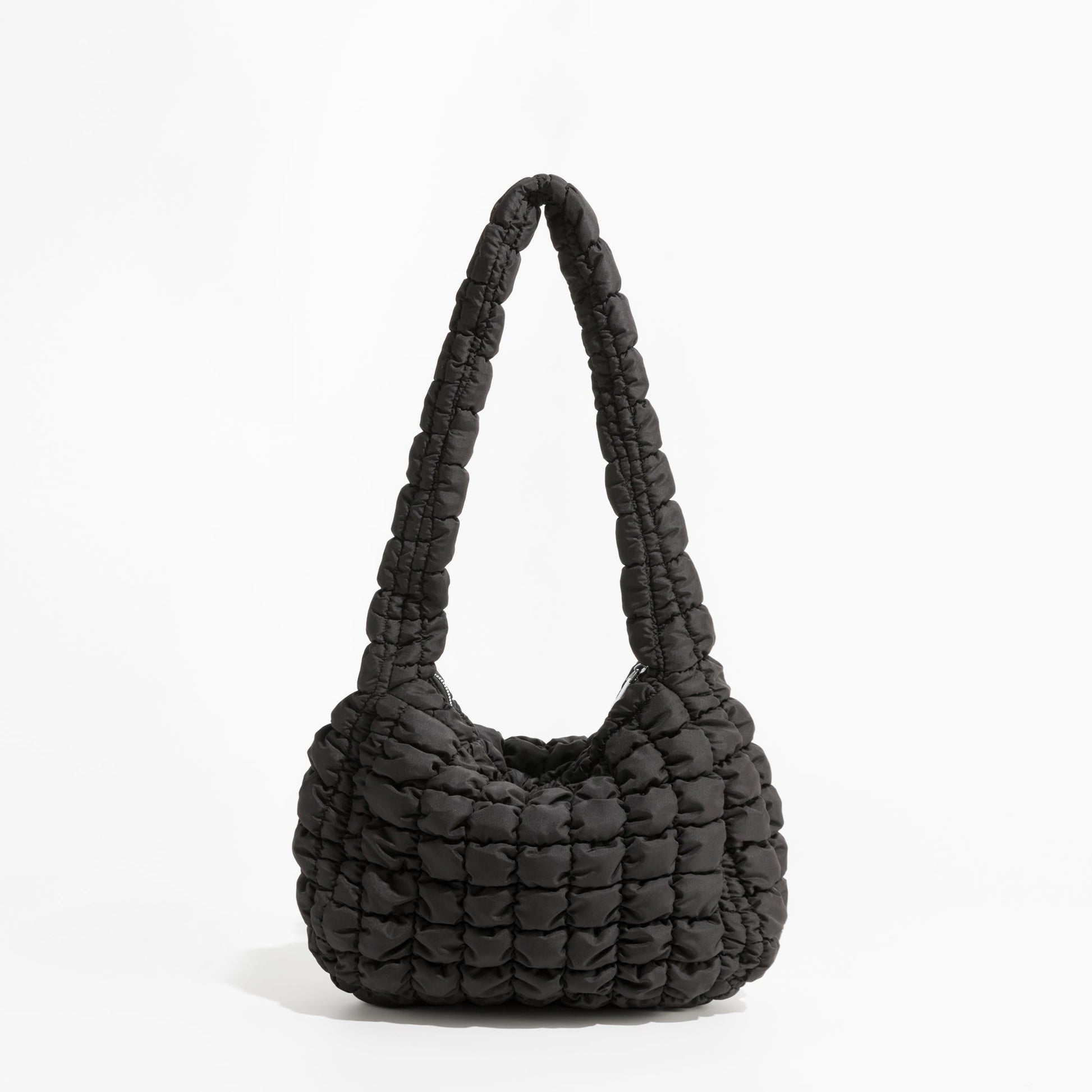 • Quilted design with zipper closure